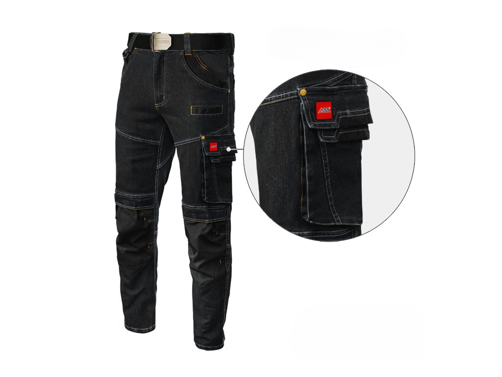 Pánské strečové pracovní džíny Jeans Stretch mají moderní design, který nijak neomezuje v pohybu, díky použití materiálu s přidaným elastanem. Vyrobeno z nejkvalitnější tkaniny o složení: