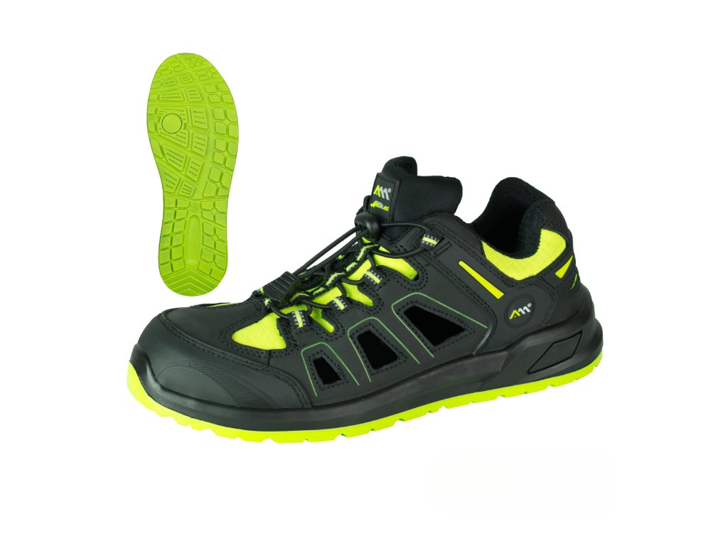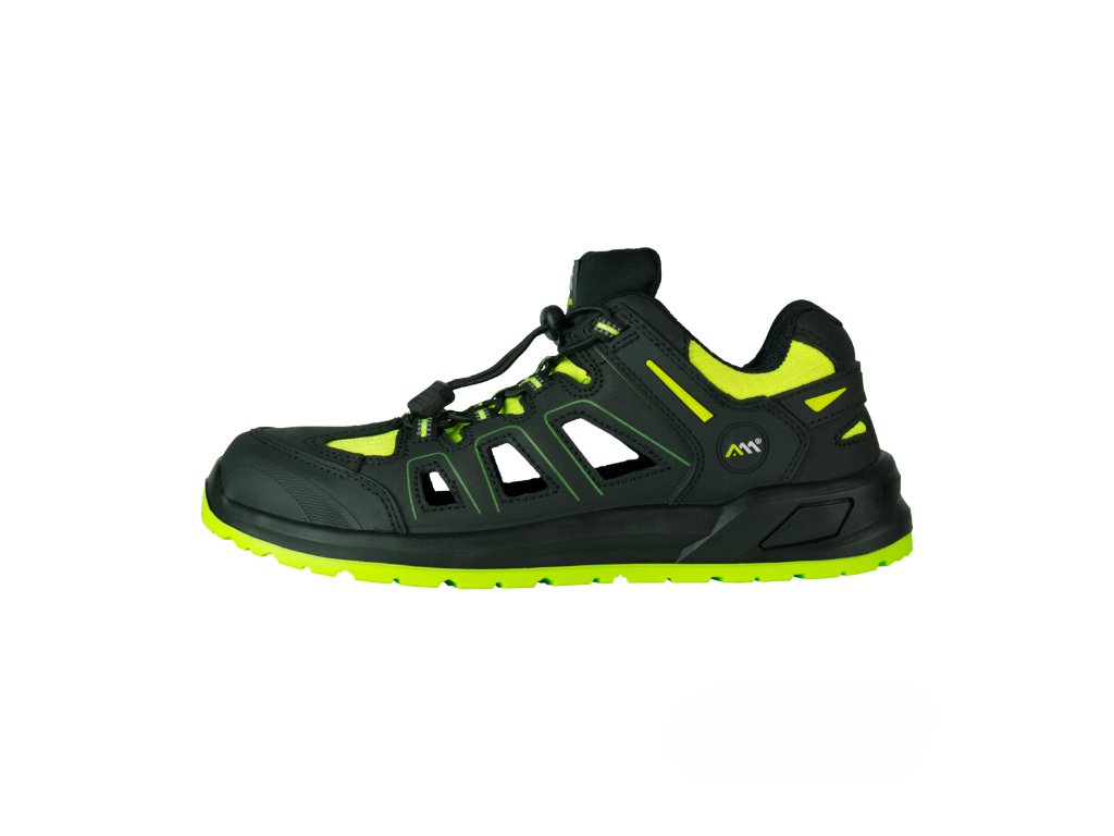 Pracovní bezpečnostní obuv (sandále) s kovovou špičkou a s atraktivním vzhledem. Svršek je vyroben z vysoce kvalitní nubukové kůže. Prošívání na svršku zvyšuje odolnost obuvi. Stylové povrchové úpravy z fluorescenčního úpletu dělají obuv nejen pohodlnou, ale i atraktivní na pohled. Sandály BS4DYNAMIC kombinují bezpečnost a módní styl.