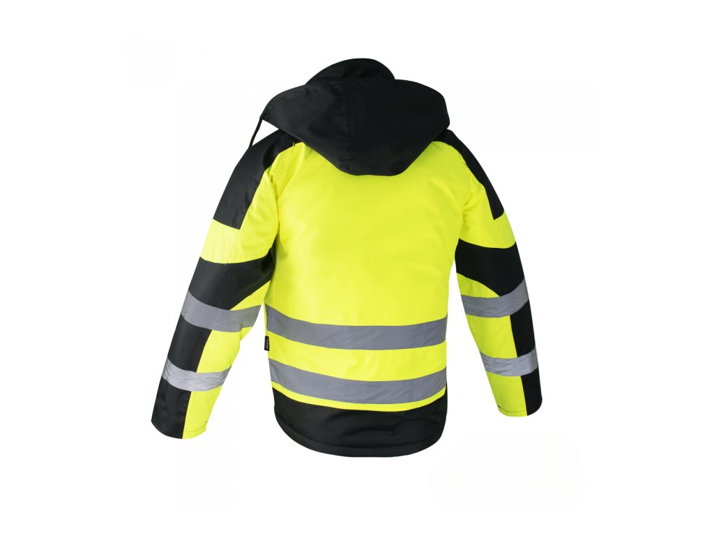 Pánská pracovní zimní reflexní zateplená bunda Flash je vyrobená z nepromokavého polyesterového materiálu